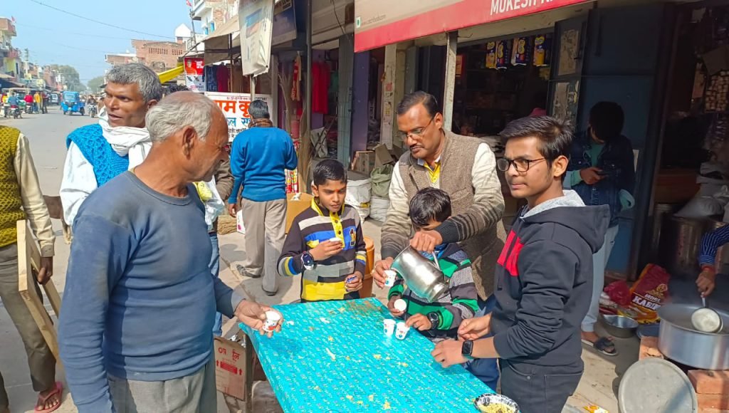 कुंडा प्रतापगढ़ । मकर संक्रांति के पर्व पर क्षेत्र के हीरागंज बाजार में व्यवसाई मुकेश केसरवानी द्वारा चाय और खिचड़ी के प्रसाद का वितरण आने-जाने वाले श्रद्धालुओं को किया गया। इसी प्रकार बाजार के राजकुमार शर्मा द्वारा भी खिचड़ी प्रसाद का वितरण श्रद्धालुओं को किया गया है इस दौरान अनिकेत, राजाराम, शुभम, आशीष आज मौजूद रहे।