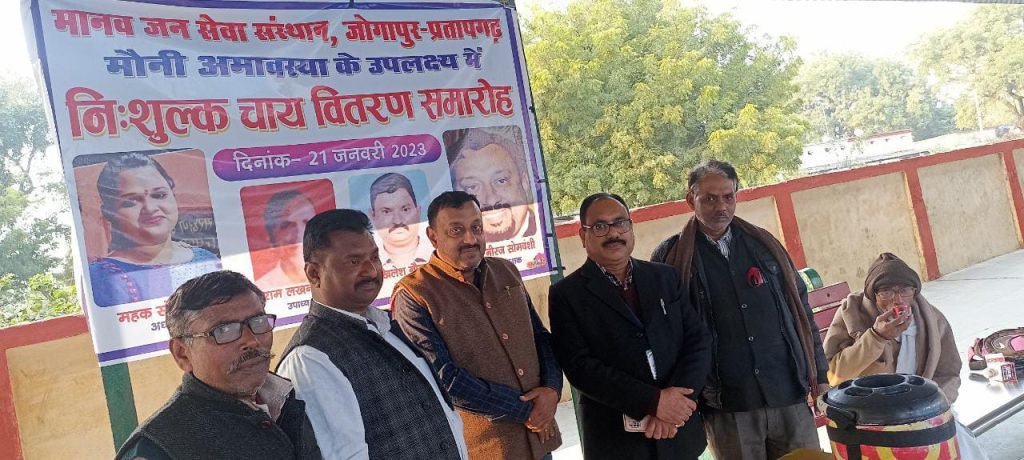 प्रतापगढ़ । मानव जनसेवा संस्थान जोगापुर प्रतापगढ़ द्वारा शनिवार को सुबह से लेकर शाम तक रेलवे स्टेशन प्लेटफॉर्म 1 व 2 पर निशुल्क चाय वितरण स्टाल लगा कर संस्थान के लोगों द्वारा यात्रियों को पिलाया गया । जहां मौनी अमावस्या के अवसर पर श्रद्धालुओं मुसाफिरों को ठंड के मौसम में फ्री में चाय मिली वही संस्थान संरक्षक कुंवर नीरज सिंह सोमवंशी दिन भर लोगों की सेवा करते दिखे रेलवे स्टेशन के मुख्य टिकट निरीक्षक राकेश सिंह टी स्टाल पर पहुंचकर सेवा में लगे लोगों का उत्साह वर्धन किया उन्होंने कहा यह मानव जन सेवा संस्थान निरंतर लोगों की सेवा करता रहता है गर्मियों में शरबत वितरण ठंडी में चाय वितरण बेसहारा लोगों को कंबल वितरण तमाम तरह से लोगों की मदद करता रहता है मेरे स्टेशन पर इस तरह का कार्य होने से मैं अपने को गौरवान्वित महसूस करता हूं और संस्थान की जितनी सराहना की जाए कम है। इस अवसर पर रेलवे स्टेशन के कमर्शियल इंस्पेक्टर एवं मानव जन सेवा संस्थान के प्रधान संरक्षक कुंवर नीरज सिंह सोमवंशी, मुख्य टिकट निरीक्षक राकेश सिंह, जितेंद्र यादव टीटी अखिलेश गौतम सचिव मानव जन सेवा संस्थान राजाराम यादव टी सी आई अमजद खान हेड टीटी कन्हैया यादव वेंडर्स आदि तमाम लोग चाय की चुस्की लेते हुए मौके पर दिन भर डटे रहे चाय की चुस्की के साथ आम यात्रियों में भारी उत्साह देखा गया। पंजाब मेल,काशी विश्वनाथ, पद्मावत एक्सप्रेस व अन्य ट्रेनों के श्रद्धालुओं को निशुल्क चाय पिलाया गया।