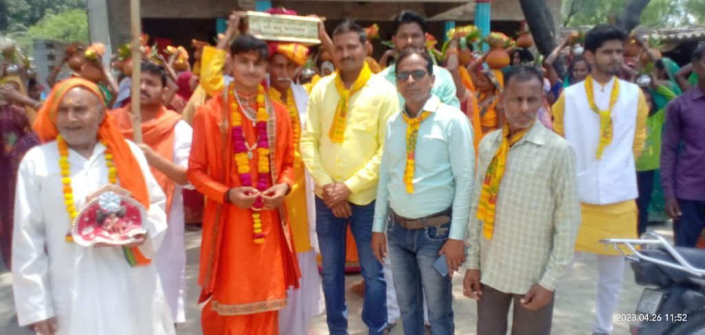 कुंडा प्रतापगढ़। विकासखंड कुंडा के पिंगरी (जय जय राम का पुरवा) गाँव में बुधवार को श्रीमद भागवत कथा से पूर्व कलश यात्रा का आयोजन किया गया। कथा व्यास आचार्य राजेश्वर महाराज जी और मुख्य यजमान कृष्णानंद ओझा (लालजी), अयोध्या प्रसाद ओझा एवं राजेश ओझा हरिओम के साथ बड़ी संख्या में माताएं बहिनें एवं सगे सम्बन्धियों ने आस्था कलश सिर पर रखकर गांव के प्रमुख मंदिरों समेत माँ शारदा देवी धाम होते हुई वापस कथा स्थल पर आकर समाप्त हुई। वेदी पूजन एवं कलश यात्रा के पश्चात कथा व्यास आचार्य राजेश्वर जी महराज द्वारा श्रीमद भागवत कथा का शुभारम्भ किया गया। कलश यात्रा में प्रमुख रूप से मुख्य कृष्णानंद ओझा, अयोध्या प्रसाद ओझा, सुरेशचंद्र, रमेशचंद्र, उमाशंकर ओझा, डॉ रमाशंकर ओझा, दुर्गेश ओझा, बिरजेश ओझा, अतुल ओझा, करन ओझा, शिवम् ओझा, ग्रामप्रधान बबलू यादव, बीडीसी सत्येंद्र यादव, युवा समाजसेवी अनूपसिंह, राममिलन, राम अभिलाष यादव, छोटेलाल, देवमूरत, बड़ी संख्या में श्रद्धालु मौजूद रहे।