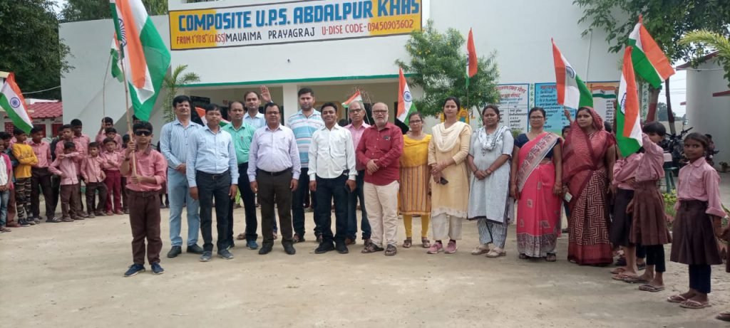 मऊआइमा (प्रयागराज)। अब्दालपुर खास संविलियन विधालय के खंड शिक्षाधिकारी के नेतृत्व में गांव में तिरंगा यात्रा निकाल कर ग्रामीणों को जागरूक किया गया। मऊआइमा विकास खंड के अब्दालपुर खास स्थित संविलियन विधालय में खंड शिक्षा अधिकारी विमलेश कुमार त्रिपाठी के नेतृत्व में तिरंगा यात्रा निकाला गया। जो गांव के विभिन्न क्षेत्रों में घूमते हुए ग्रामीणों जागरूक किए और तिरंगा के बारे में बताया गया। इस अवसर पर शिक्षक सतीश चंद्र त्रिपाठी, लाल बहादुर, अंजनी कुमार यादव, राजेंद्र कुमार यादव, बिहारी लाल, विजयकांत शुक्ला, उष्मा अग्रवाल, विपिन द्विवेदी, आदित्य कुमार, पूनम कुशवाहा, रेनू प्रजापति, रीता देवी, हेमलता आदि शिक्षकगण मौजूद थे।