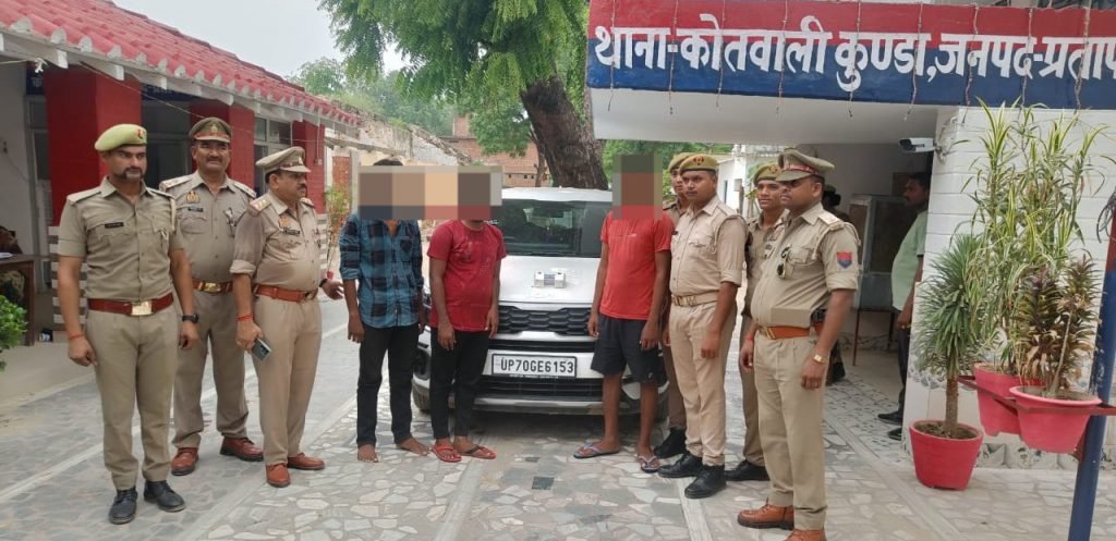 कुंडा प्रतापगढ़। अपहरण के तीन आरोपियों को पुलिस ने गिरफ्तार करके जेल के सलाखों के पीछे पहुंचा दिया। तीनों आरोपियों के पास से ₹145000 नगद तथा अपहरण के समय उपयोग में लाई गई कार भी बरामद हुई है। प्रभारी निरीक्षक कमलेश कुमार पाल को एक बड़ी कामयाबी हासिल हुई है जहां अपहरण के 3 अभियुक्त को पुलिस ने गिरफ्तार करने में सफलता पाई है। पकड़े गए अभियुक्त सोनू उर्फ संजय सरोज पुत्र रामसुमेर निवासी शेखपुर थाना कुण्डा दूसरा अभियुक्त दीपू उर्फ जितेन्द्र कुमार विश्वकर्मा पुत्र संतोष कुमार निवासी मोहद्दीनगर थाना हथिगवाँ तथा तीसरा आरोपी अभिषेक कुमार विश्वकर्मा उर्फ बउआ पुत्र तेज प्रकाश निवासी गिरधरपुर गढ़ी थाना सैनी, जनपद कौशाम्बी को मुखबिर की  सूचना पर कुण्डा के बिहार रोड भदरी मोड के पास गिरफ्तार किया है। घटना से संबंधित शेष 02 अभियुक्तों को चिन्हित कर लिया गया है। उन दो अभियुक्तों की भी गिरफ्तारी की पुलिस प्रयास कर रही है। गिरफ्तार अभियुक्त सोनू उर्फ संजय सरोज ने पूछताछ में बताया कि मैनें एक व्यक्ति को 25 लाख रुपये पेट्रोल पम्प खुलवाने हेतु दिया था। जिसने मेरे साथ धोखाधडी किया है। इसी कारण अब मेरे ऊपर काफी कर्जा हो गया है। जिसकी भरपाई करने के लिए मुझे यह कदम उठाना पड़ा है। अपहृत बालक की पहले ही बरामदगी हो चुकी है। मेरे पास पैसा कमाने का कोई अन्य साधन नहीं था। जिससे हमने अपने दोस्तों के साथ मिलकर एक व्यक्ति के बच्चे की अपहरण की योजना बनाकर पैसा मांगने के उद्देश्य से घटना कारित की थी।