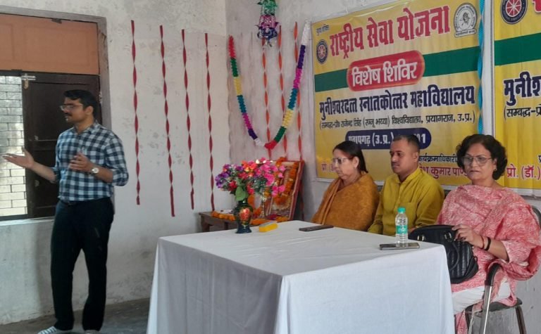 प्रयागराज। राजर्षि टंडन महिला महाविद्यालय की राष्ट्रीय सेवा योजना इकाई के तत्त्वावधान में आयोजित सात दिवसीय विशेष शिविर के सातवें दिन स्वयंसेविकाओं ने दिन की शुरुआत योग, व्यायाम, प्रार्थना और श्रमदान से की। प्रथम सत्र में छात्राओं के मध्य “आत्मनिर्भर भारत” विषय पर रंगोली प्रतियोगिता का आयोजन किया गया। इसी सत्र में महाविद्यालय के शिक्षक … Read more