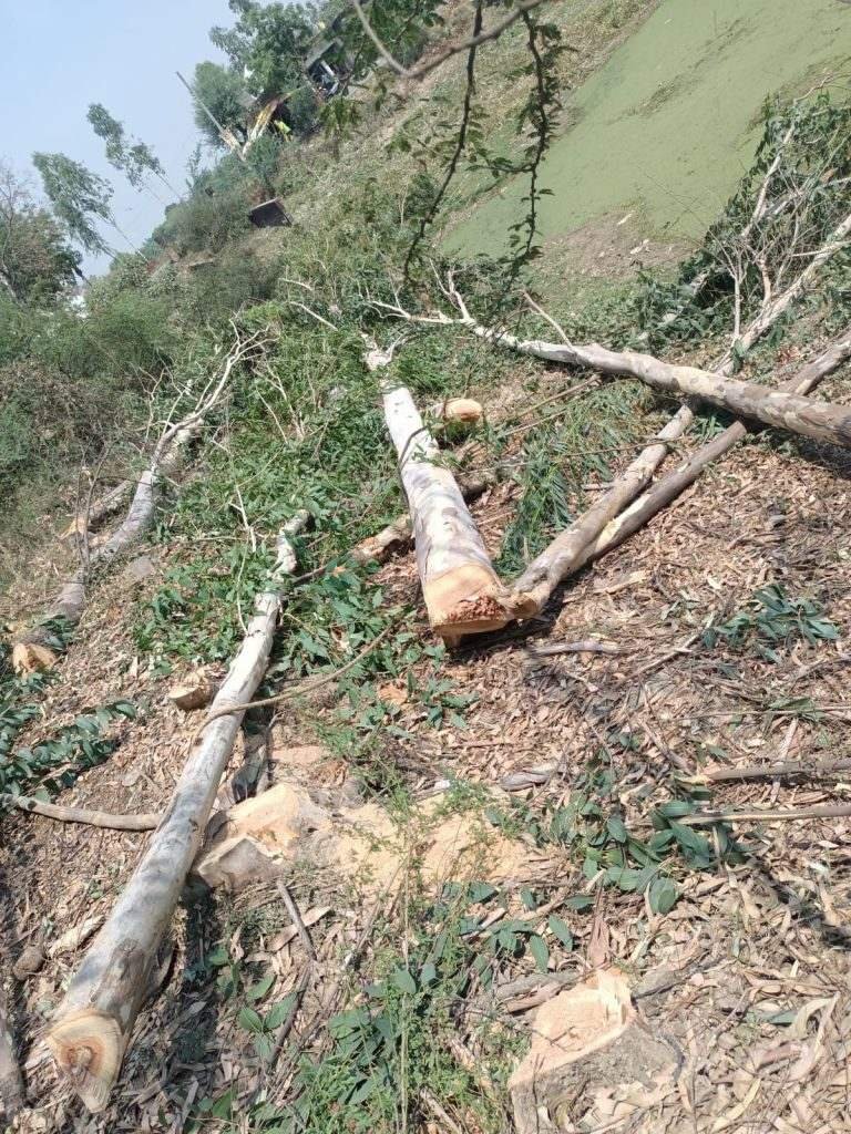 सरकारी तालाब की जमीन से सफेदा का पेड़ काटने का आरोप